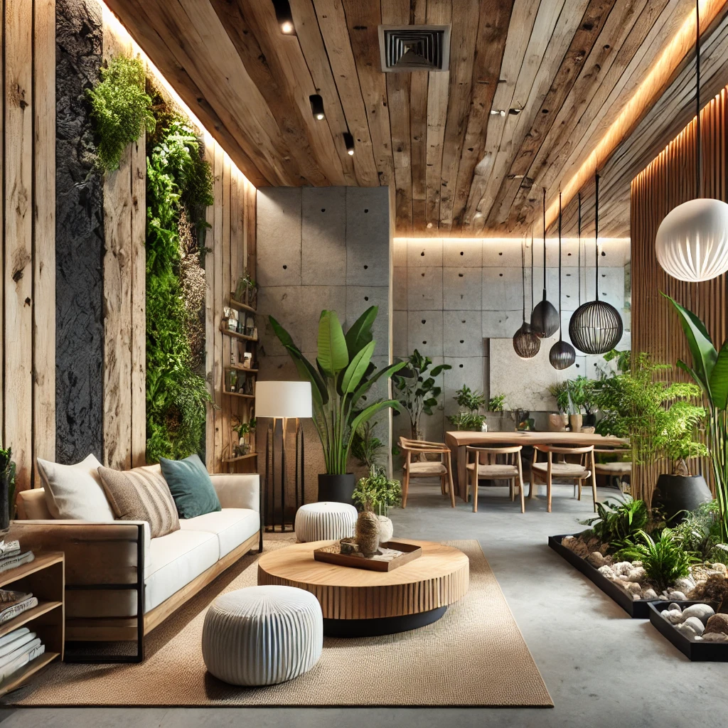 • Sử dụng vật liệu tái chế và thân thiện với môi trường như gỗ tái chế, đá tự nhiên, sợi hữu cơ.