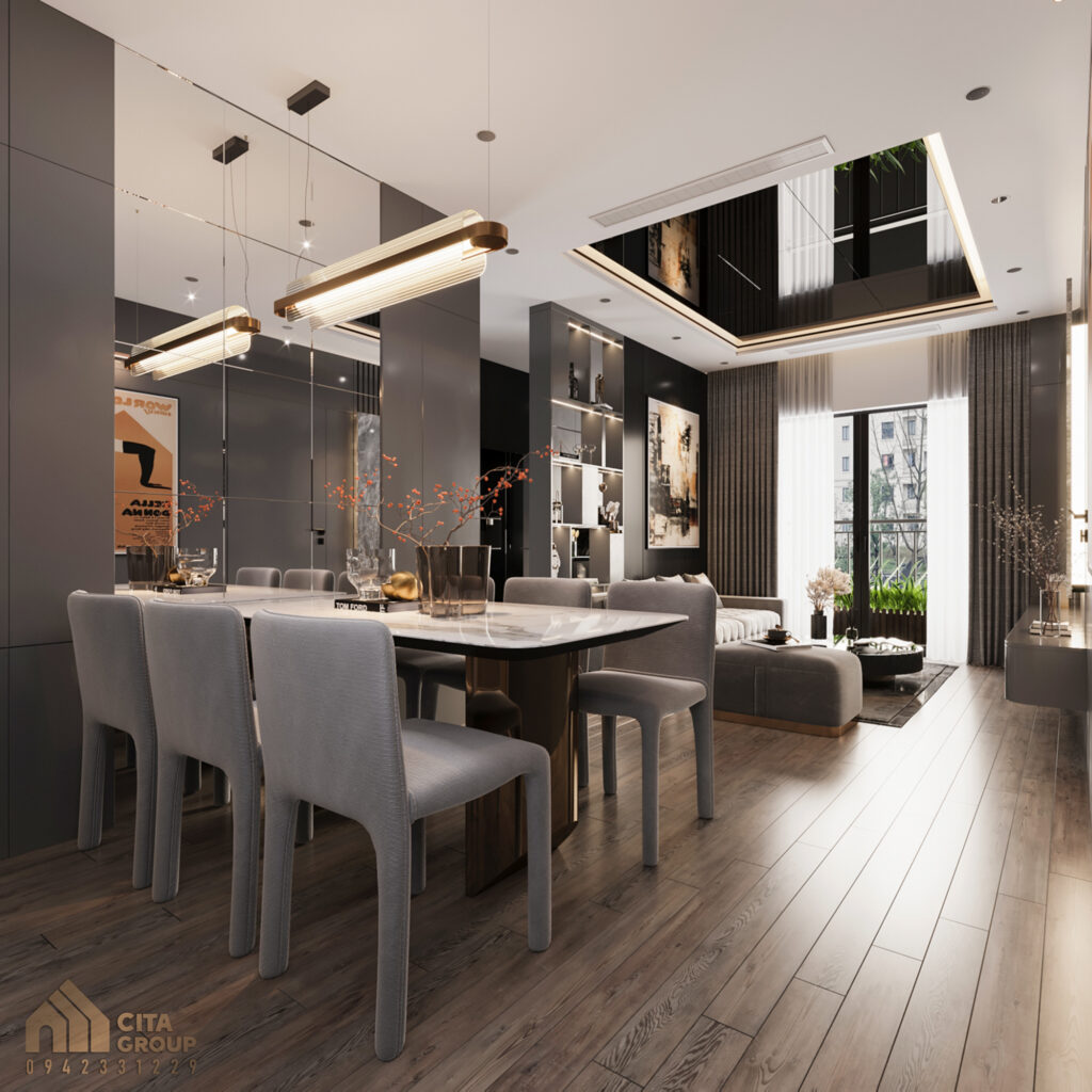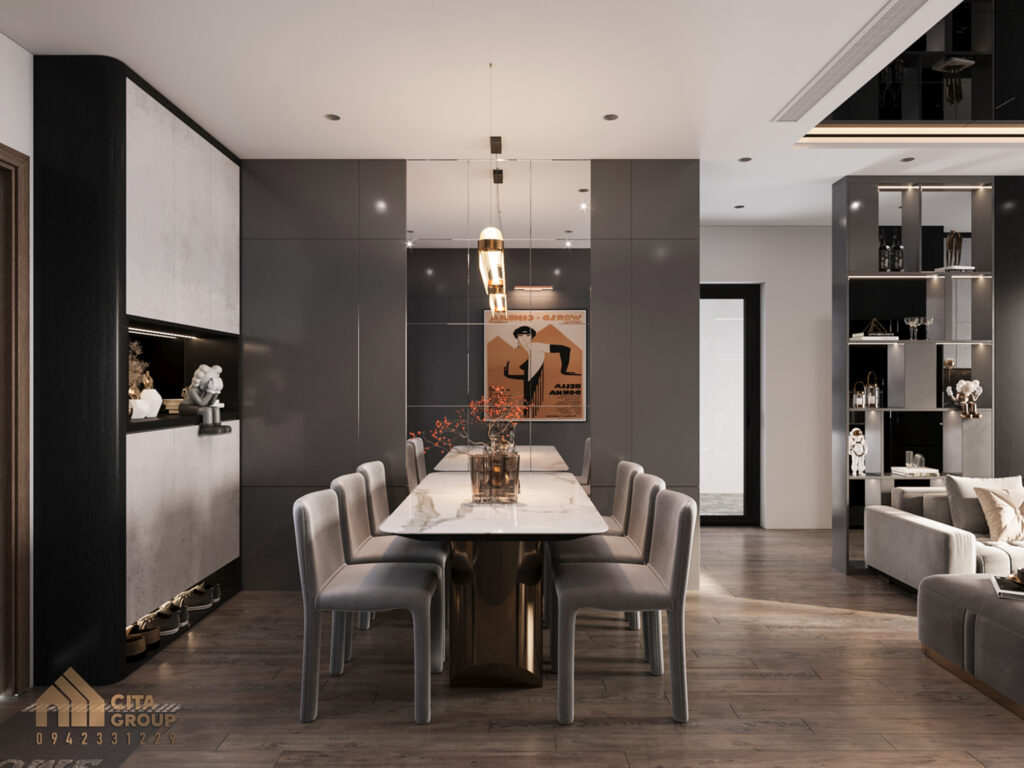 Từng chi tiết đều được tính toán kỹ lưỡng, từ ánh sáng, chất liệu đến màu sắc – thể hiện gu thẩm mỹ hiện đại và tinh tế của gia chủ, đồng thời là minh chứng cho năng lực thiết kế của đội ngũ KTS CITA Group.