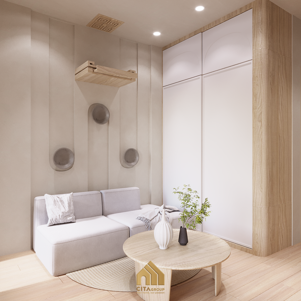 Thiết kế căn hộ Studio Aura Vinhomes Smart City với diện tích 30m², bạn có thể tối ưu hóa không gian để đảm bảo đầy đủ tiện nghi mà vẫn rộng rãi, thoáng đãng. Dưới đây là cách bố trí chi tiết cho từng khu vực để tối ưu công năng và không gian ngôi nhà do đội ngũ KTS của CITA Group thiết kế và thi công.